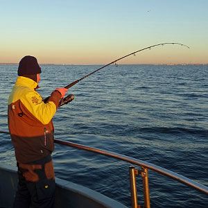 Die Flugreise von Basel-Mulhouse nach Kopenhagen dauerte gerade anderhalb Stunden. Weiter ging es rund eine Stunde lang mit dem Zug nach Helsingør. In freudiger Erwartung marschierten Patrick und Franz Sidler, Dani Häfliger Chregu Wernli, Andy Gasser und Dani Merz bei minus 4 Grad zum Hafen. Wir wurden kurz darauf von Kapitän Norbert Schugardt auf dem Angelkutter «Gode Michel» warmherzig begrüsst.